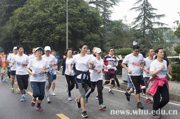 “我宣布,微爱珞珈校园健身公益环跑正式开始!”在韩进的号召下,环跑活动伴随着发令员的鸣枪,正式启动,各方阵有序出发。