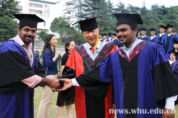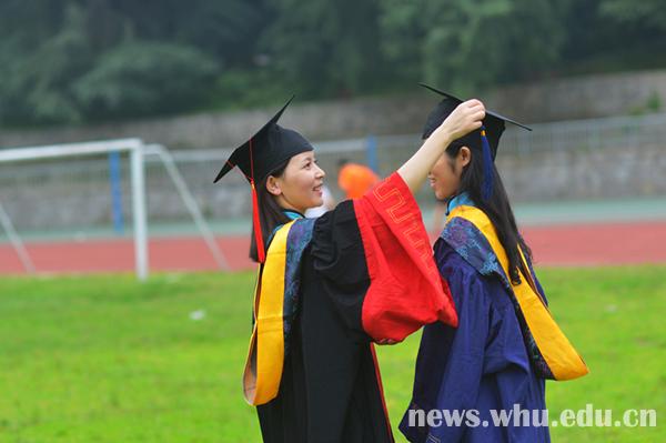 毕业时与校领导们合影已成为武大的一项传统,是送给毕业生的一份珍贵礼物。6月8日起,校党委书记韩进、校长李晓红等全体在校的校领导,与每个学院(系)的毕业生们合影。