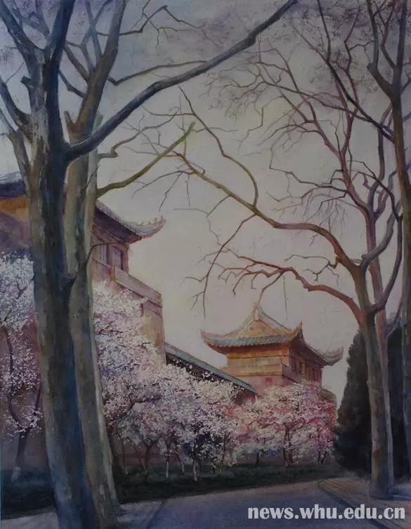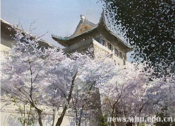 2012年,智利一位曾未到访中国的退休美术教师María Angélica Quezada Murúa,偶尔看到了武大樱花城堡的一张图片,在为之惊叹之余进行了一次激情创作,用水彩绘了她心中的樱花城堡,成就了武大的一次异域印象。珞珈山水和建筑总给人以遐思和灵感,常在艺术家、武大师生和校友的旋律中飞扬,笔端下流淌、镜头里定格。