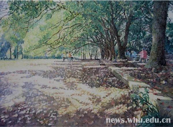 编者按:《典藏珞珈——王诚浩、温庆武、袁诚、周秀梅、杨青纸上作品展》,10月10日在万林艺术博物馆正式开展。城市设计学院五位青年美术教师历时三年,将武大风物之美凝于笔端,创作出了80余幅水彩作品。展览将持续到10月30日。