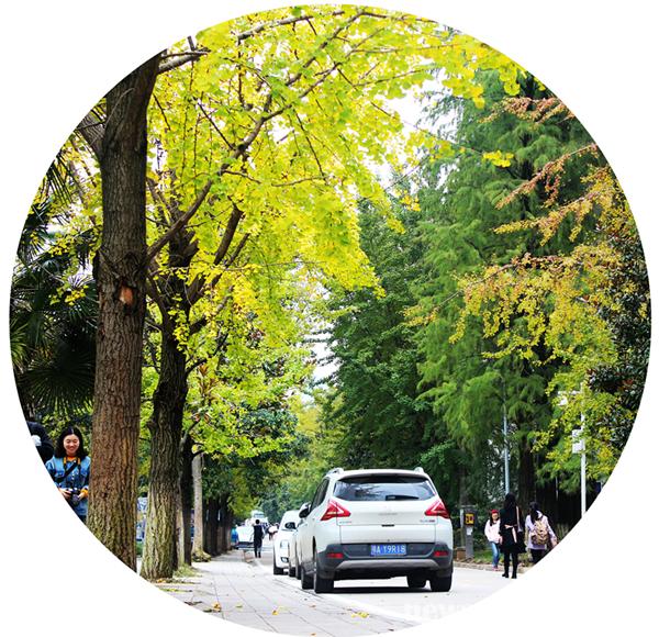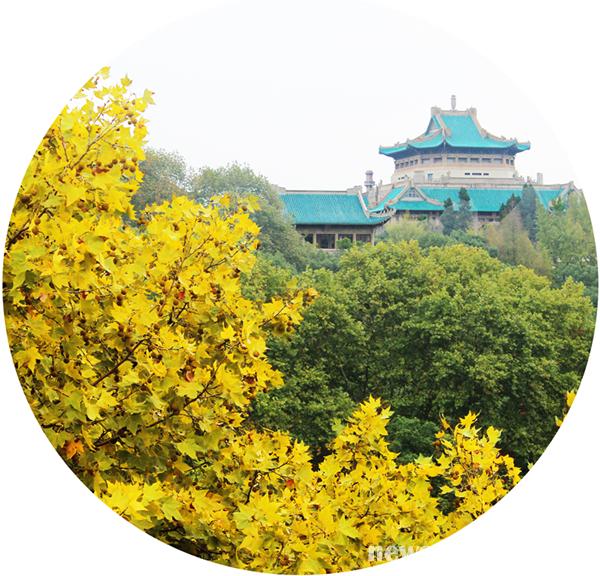 ▲秋日的珞珈如诗如画,在黛瓦和黄叶的映衬下更添庄重。