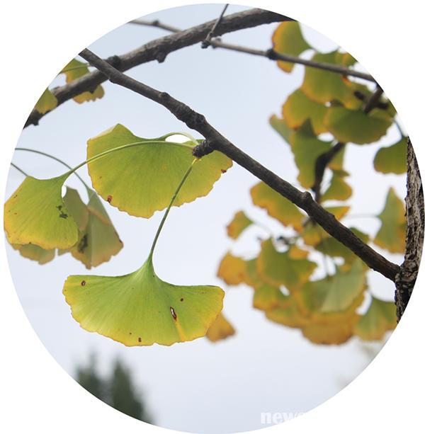 ▲十月末的银杏叶已染上几缕金黄,为迎接十一月的金装做好了准备。