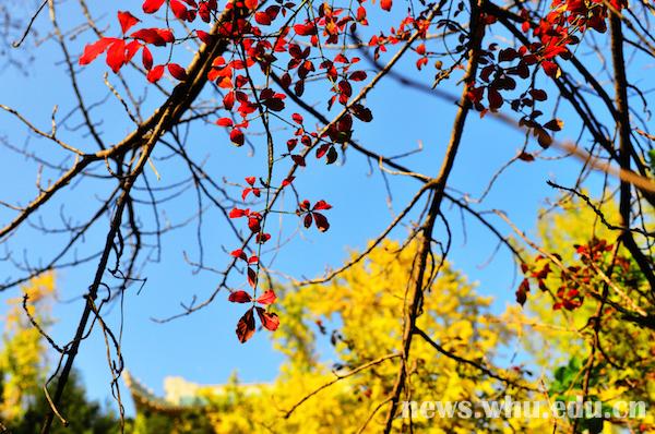 晚秋日渐远去,冬天在悄无声息中来了,将校园涂抹成一幅绚烂的画卷。