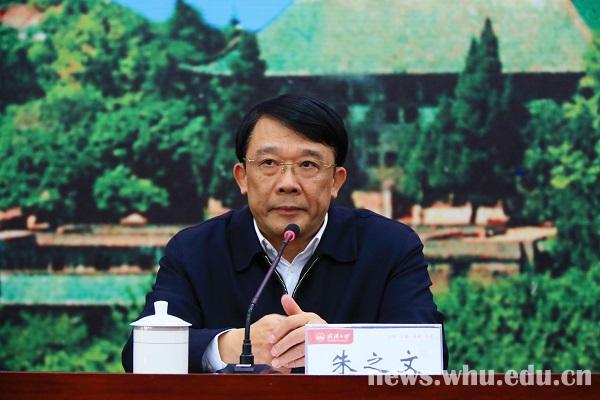 朱之文代表教育部党组表示坚决拥护党中央、国务院的决定。他指出,武汉大学是中国近代史上第一批成立的国立大学,在我国高等教育格局中具有重要地位。近年来,学校综合实力和核心竞争力不断提升,人才培养质量稳步提高,社会声誉和国际影响力进一步扩大,师生的幸福感和归属感日益增强,全校上下心齐气顺,呈现出快速发展的良好态势。李晓红同志担任武汉大学校长近六年来,为学校发展付出了大量心血,做出了重要贡献,在师生中享有很高威望。中央调李晓红同志到教育部工作,充分体现了党中央国务院对武汉大学的高度重视和亲切关怀,也是对武汉大学各项事业改革发展成效的充分肯定。朱之文代表教育部对武汉大学提出四点要求:一是坚持正确方向,落实立德树人根本任务;二是坚持改革创新,全面推进事业发展;三是坚持民主集中制,切实加强学校领导班子建设;四是坚持从严治党,为学校事业发展提供坚强保障。