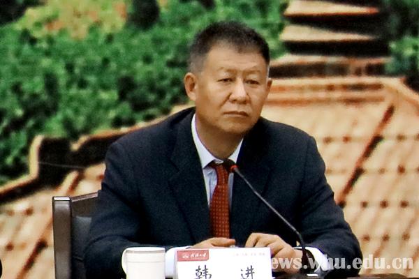 韩进表示,第一,坚决拥护中央的决定。中央决定窦贤康同志任武汉大学校长,充分体现了中央对武汉大学的高度重视,对武汉大学下一阶段的建设发展具有非常重大的意义。第二,衷心感谢李晓红同志为武汉大学发展做出的重要贡献,希望他继续关心和支持武汉大学的发展。第三,欢迎窦贤康校长来武汉大学任职,相信他的到来一定会给武大带来强大的正能量。在今后的工作中,校领导班子将共同努力,助推学校发展再上新台阶。