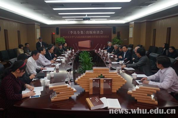 4月14日,《李达全集》出版座谈会在人民出版社举行,国家新闻出版广电总局出版管理司副司长许文彤、人民出版社社长黄书元、我校党委副书记骆郁廷,中共中央党校、北京大学、中国人民大学、武汉大学等单位相关专家出席,人民出版社总编辑辛广伟主持。