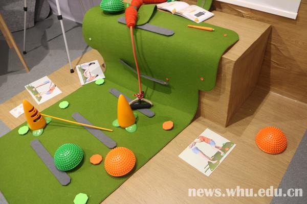 ▲实用性很强的亲子健身器材、儿童多功能储物座椅引起了不少家长的兴趣。