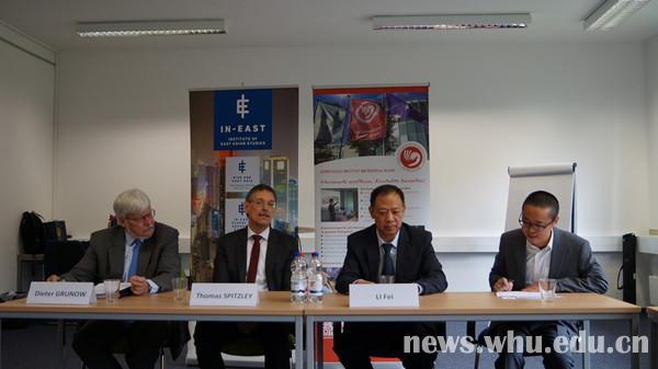 ▲与德国杜伊斯堡-埃森大学副校长史匹茨莱教授等会谈