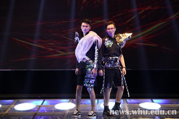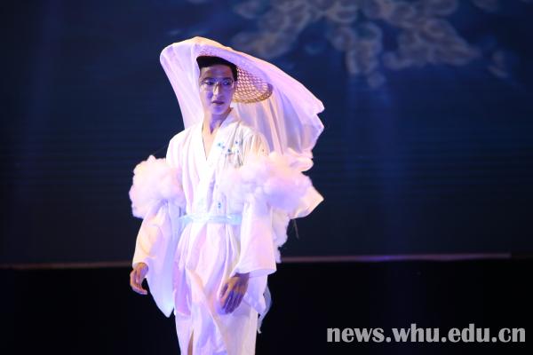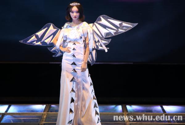 ▲信息管理学院《泱泱》上善若水。水利万物而不争,却可凭它的清灵多变脱颖而出,白色与蓝色融一片清凉,简单搭配就令人望穿秋水。水无常形却始终如一,简单的白色光下,透明的衣服灵动似水,蓝色的棱角分明似冰, 水的形态展现无余。