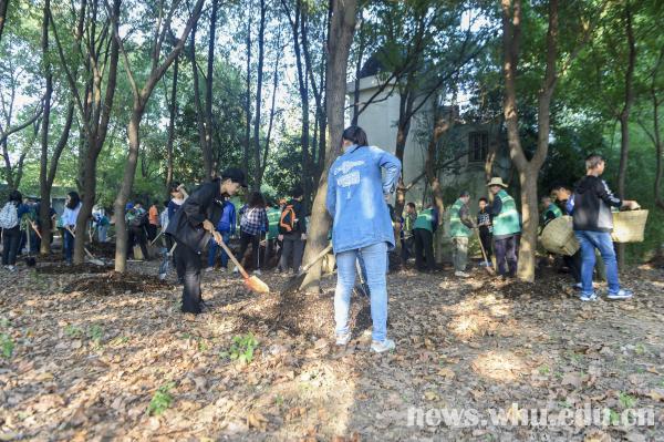 10月26日,该中心党支部联合测绘学院举办了“美丽武大,文明珞珈”环境育人活动,测绘学院2017级80余名新生参观了枝叶粉碎厂及两处花卉生产基地,在天文台参加了义务劳动,将经过枝叶粉碎厂粉碎的枝叶围在树根周围,体验环保的价值与意义。