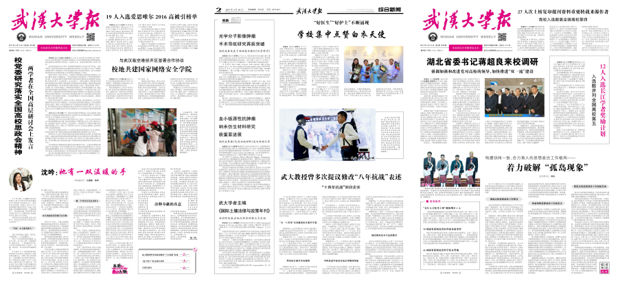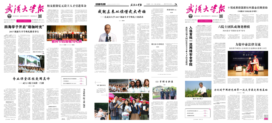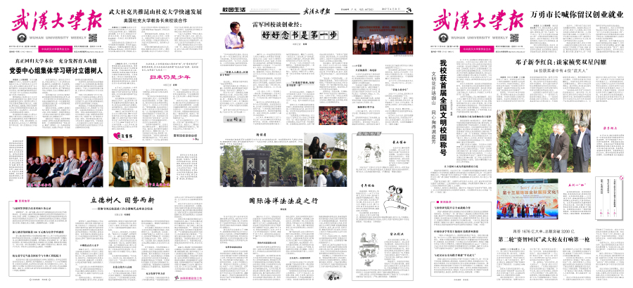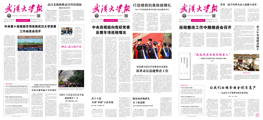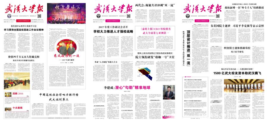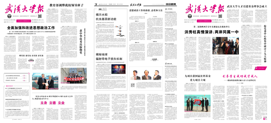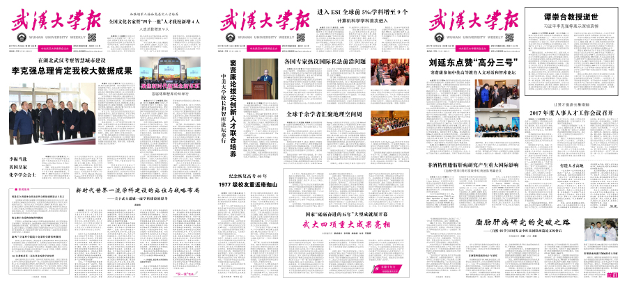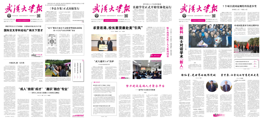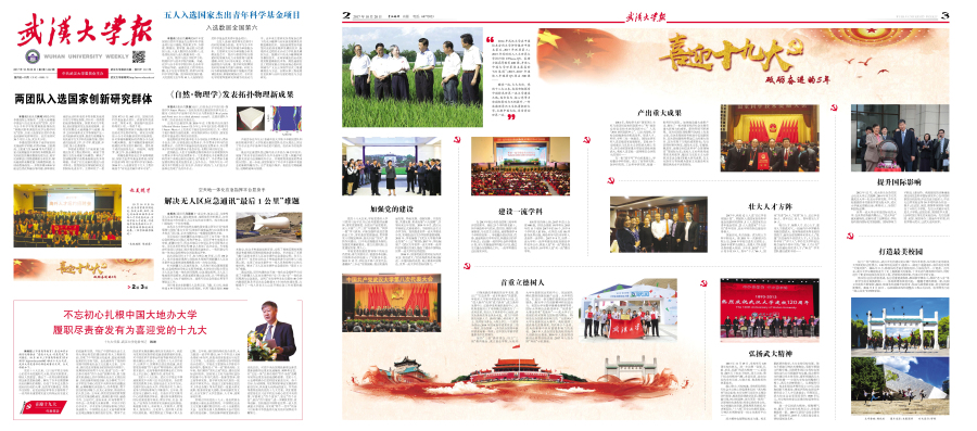 早在9月22日,《光明日报》以整版篇幅报道武汉大学砥砺奋进的五年,“为祖国贡献才智,如远流汇入江海。”12月28日又整版报道武汉大学将十九大精神融入推动内涵式发展的实际行动,“增强办学治校本领,建设世界一流大学。”